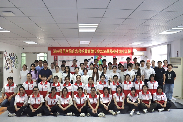 5月17日,我校首届应急救护教育微专业毕业生齐聚西校区红十字应急救护培训中心,以一场高标准、严要求的“实战化”结业汇报交出了一份饱含专业素养与人文情怀的“生命守护者”的高分答卷。浙江省红十字会应急救护指导和备灾救灾中心副主任龚青云,湖州市红十字会党组副书记、专职副会长沈维勇,我校教务处副处长张永,湖州市红十字会党组成员、赈济救护部部长吴飞娜,湖州市红十字应急救护学院骨干师资,以及应急救护教育微专业2025届和2026届毕业生共同参加。活动由我校医学院(护理学院)党委副书记董建新主持。