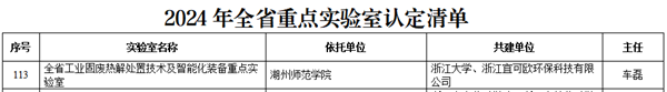 近日,浙江省科学技术厅正式公布了2024年全省重点实验室认定结果,由我校牵头建设的“全省工业固废热解处置技术及智能化装备重点实验室” 成功入选。这是我校面向国家战略和地方经济社会发展需求,积极融入浙江省“315”科技创新体系取得的新成效。