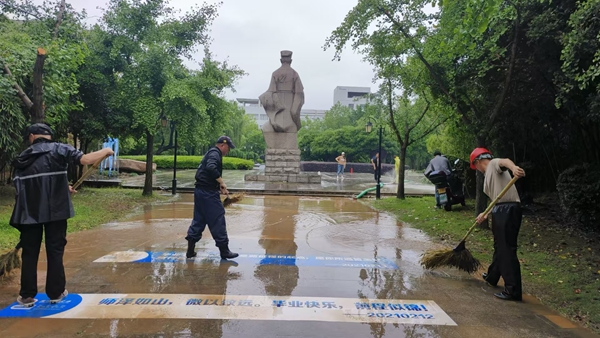 此次防汛抢险工作中,后勤服务中心以“汛”为令,以高度的责任感和使命感,冲锋在前、勇于担当,用实际行动诠释了“以人为本、安全第一”的服务理念,为校园安全筑牢了坚固防线。