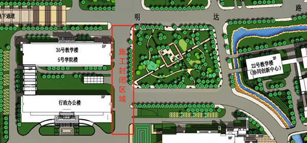封闭施工期间该区域车辆将无法通行请指示绕行,同时明达楼和经管学院地下车库及图书馆地下车库北出入口也将无法出入,请停在上述区域的所有车辆在6月27日24点前自行驶离,具体恢复正常通行时间视工作进程提前或推后不再另行通知,请各学院、部门、广大师生相互转告,给您造成的不便,敬请谅解!