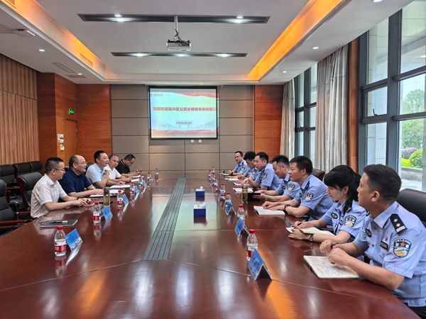 7月11日,吴兴区公安分局党委委员、副局长杨旭一行莅临我校调研指导平安校园建设工作。校党委委员、组织部部长劳士健,安全保卫部部长季志及相关人员参加座谈交流。