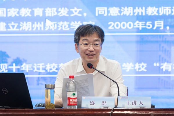 9月6日上午,副校长(主持行政日常工作)盛况以“牢记殷殷嘱托 扛起使命担当,在践行教育家精神中续写学校高质量发展精彩华章”为题,为全体新教工上了“校长第一课”。盛况代表学校对新教工的加入表示热烈欢迎,他从绿水青山就是金山银山理念诞生地、中国美丽乡村发源地、“生态+”绿色发展先行地、乡村振兴先行地四个金名片出发,与全体新教工分享了湖州市人文荟萃、山水清丽、生活便捷、社会和谐的特色。