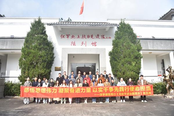 在谭家桥红军北上抗日先遣队纪念馆,全体党员参观了瞻仰大厅、粟裕将军墓、战壕遗迹和战斗指挥台等,重温了红军北上抗日先遣队的战斗历程和峥嵘岁月,透过一件件印满岁月痕迹的文物原件和一张张珍贵的历史照片,仿佛看到了红军将士当年浴血奋战的壮烈场面。