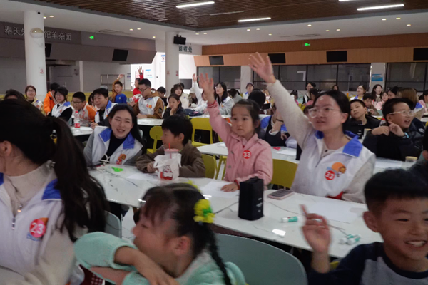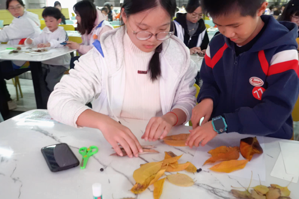 下午1时,活动在精心布置的中校区和畅餐厅二楼拉开帷幕。在“自然启蒙”环节,志愿者通过互动问答和生动讲解,让孩子们在轻松愉快的氛围中学习秋季植物知识。“为什么枫叶会变红”“校园里哪些植物在秋天结果”等问题引发孩子们热烈讨论,现场气氛活跃。