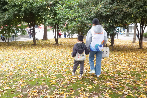 随后进行的“校园寻芳”环节中,孩子们在志愿者带领下分组探访校园。沿中校区林荫道和胡瑗广场沿线,他们认真观察银杏、桂花等植物的形态特征,并细心收集落叶、花瓣等自然素材。志愿者现场讲解植物习性,帮助孩子们建立对校园生态的直观认知。