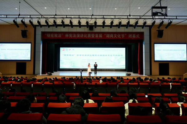 为深入学习宣传贯彻习近平法治思想,传承湖商“诚信务实、经世济民”文化基因,12月8日晚,“明宪致法”杯宪法演讲比赛暨首届湖商文化节闭幕式顺利举行。本次活动由湖州市司法局、市普法办、校优米app怎么下载安装与经济管理学院联合主办,校大学生法律援助中心承办。湖州市司法局党委书记、局长吴宇昕,校党委委员、宣传部部长朱小芳,经济管理学院领导班子出席本次活动。400 余名师生齐聚一堂,共赴法治与文化的青春之约。