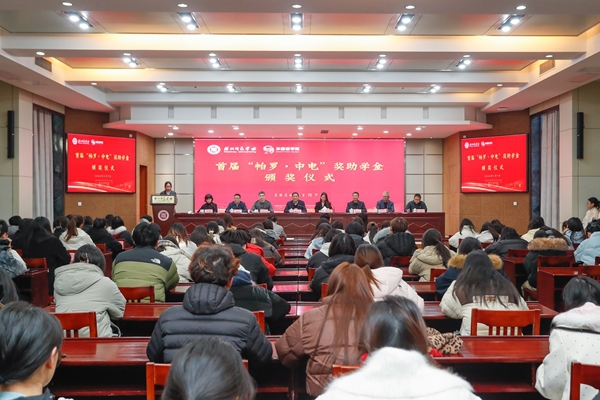 1月7日下午,首届“帕罗·中电”奖助学金颁奖仪式在我校举行。校党委副书记陈永华,帕罗羊绒制品有限公司总经理、2009届校友刘乙萱,湖州市委统战部原常务副部长李晓良,湖州市政协经济委原主任、市慈善总会副会长姬海荣出席仪式,湖州中电太阳能科技有限公司、湖州市慈善总会,我校社会合作与发展联络办公室、学工部相关负责人,外国语学院领导班子以及120余名师生代表共同参加。
