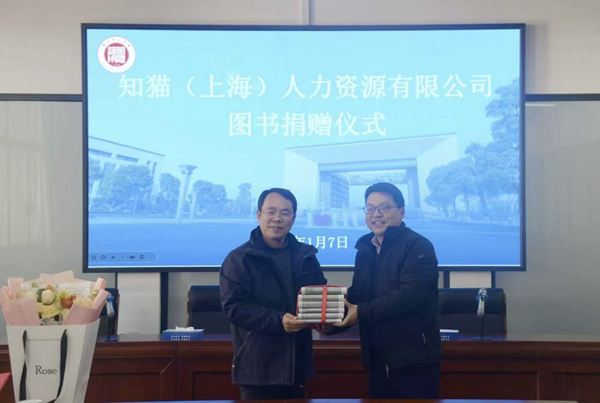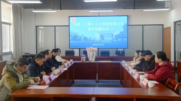 1月7日下午,知猫(上海)人力资源有限公司图书捐赠仪式在东校区图书馆A615会议室举行,知猫公司董事长姜鹏、华汝国博士及湖州分公司负责人左冰芹等一行六人出席捐赠仪式,我校馆长唐卫宁、副馆长张坤能及相关部室负责人共同参会。仪式由副馆长张坤能主持。